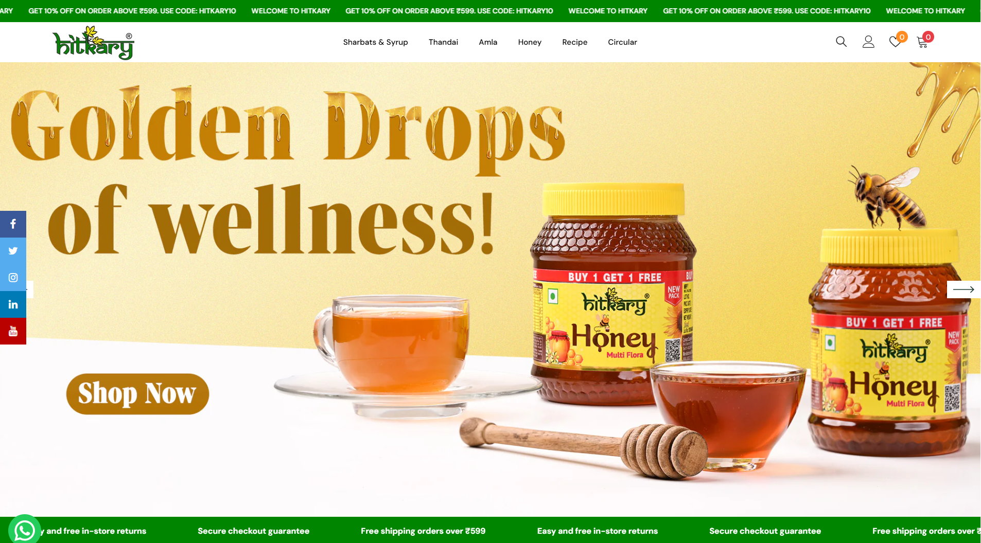 H itkary.in is the official e-commerce website for Hitkary Pharmacy India Private Limited, a consumer brand specializing in traditional Indian beverages, sharbats (syrups), honey products, amla products, and related food & drink items. The site functions as a full-featured online store where customers can browse, select, and purchase a wide range of refreshing drinks and natural health products, with options for secure checkout, discounts, and free shipping offers on qualifying orders.
